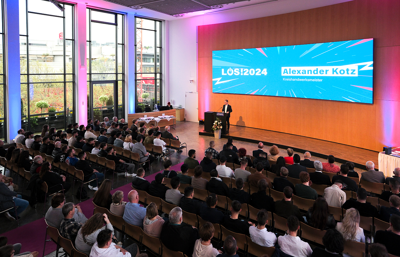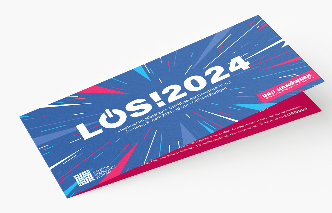 Unter dem Motto LOS! beginnt für die erfolgreichen Gesellinnen und Gesellen, an diesem Abend die Zukunft. Frei von den Mühen der Ausbildung ist die Lossprechung auch ein wichtiger Schritt in die persönliche Selbstständigkeit. Die Ehrung der Nachwuchshandwerker und die Überreichung der Gesellenbriefe findet im außergewöhnlichen Ambiente des Stuttgarter Rathauses statt. Als besonderes Highlight tritt bei jeder LOS! auch ein Showact auf. Den feierlichen Gesellentrunk toppt zum Abschluss nur noch das virtuelle Konfetti-Feuerwerk.
