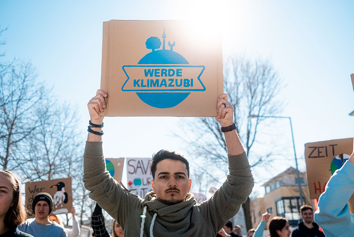 »Mach es real und werde KLIMAZUBI im Handwerk!« – der Slogan ist Aufforderung und Mutmacher gleichermaßen. Denn jeder kann im Handwerk etwas bewegen. Besonders Berufe, die konkret an der Umsetzung der Klimaschutzziele beteiligt sind brauchen helfende Hände. Elektroniker, Anlagemechaniker, Stuckateure und Dachdecker installieren z. B. Ladesäulen für E-Autos, optimieren Heizungsanlagen, bauen mit umweltschonenden Materialien oder bringen Solaranlagen aufs Dach. Das zeigt spannend und hautnah auch der KLIMAZUBI-Kampagnenspot. Für die Protagonisten geht es von der Klimaschutzdemo rein ins Machen. Aus Theorie wird Praxis. Sie packen als Stukateur und Elektronikerin an, ergreifen ihre Chance für die eigene Zukunft und besonders für die unserer Erde. Mit nur wenigen Sekunden zieht der Spot die Aufmerksamkeit des Zuschauers in seinen Bann. Die spannenden Perspektiven und schnelle Schnitte wecken die Neugier. Der Slogan löst am Ende den Spot auf und fordert zur Aktion auf: Werde auch du KLIMAZUBI.